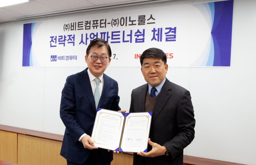 양사는 파트너십 체결을 통해 국내외 디지털 전환 사업에 협력할 계획이다. 비트컴퓨터는 주요 사업에서 이노룰스의 솔루션을 활용해 디지털 전환을 가속하고, 이노룰스는 그간 구축한 디지털 전환 성공사례를 활용해 비트컴퓨터의 주요 사업에서 디지털 전환 이슈를 안정적으로 해결한다는 것이 주요 골자다.